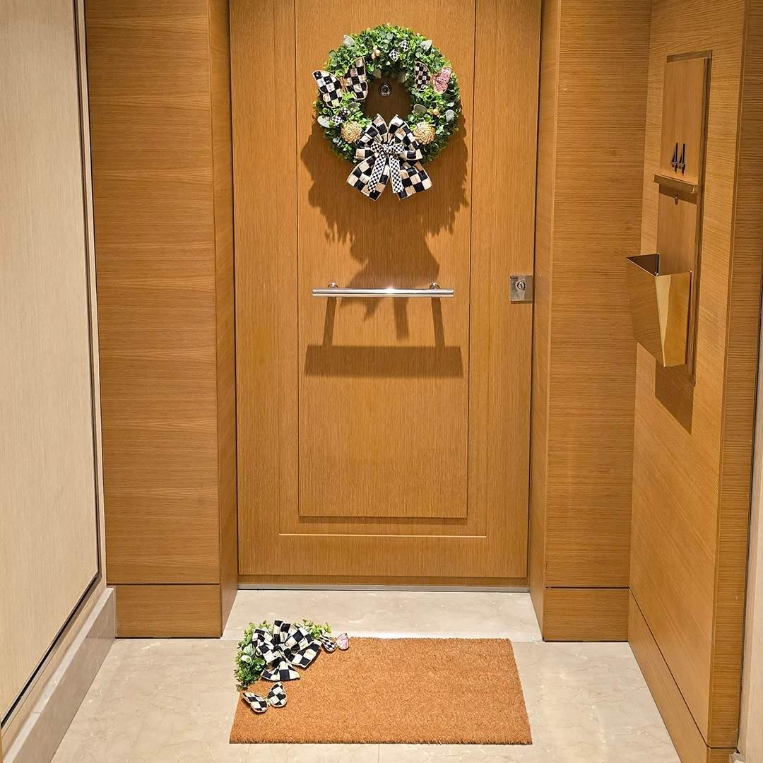Ella imzalı özel tasarım kapı süsleri ve paspas modellerinde kullanılan tüm kurdele çeşitleri Mackenzie-Childs orijinal kurdeleleridir.
