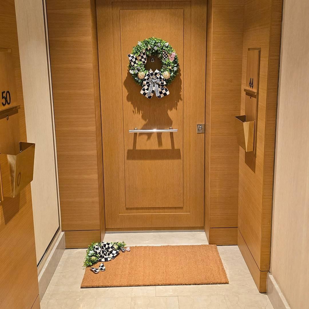 Ella imzalı özel tasarım kapı süsleri ve paspas modellerinde kullanılan tüm kurdele çeşitleri Mackenzie-Childs orijinal kurdeleleridir.