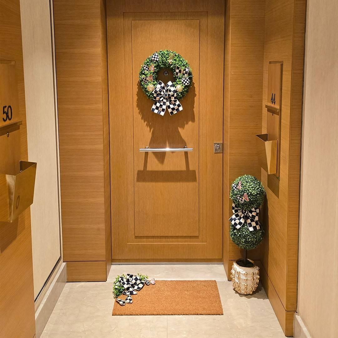 Ella imzalı özel tasarım kapı süsleri ve paspas modellerinde kullanılan tüm kurdele çeşitleri Mackenzie-Childs orijinal kurdeleleridir.
