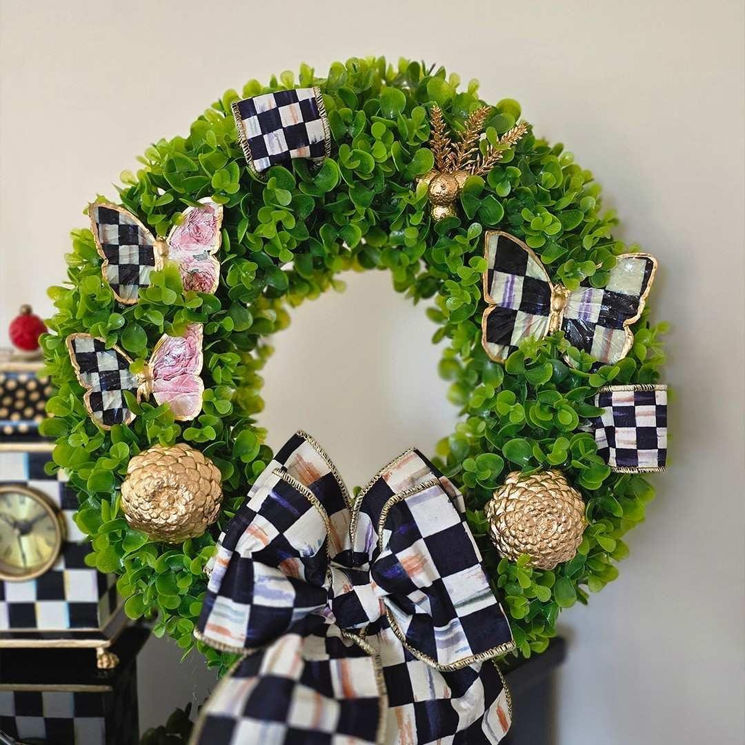 Ella imzalı özel tasarım kapı süsleri ^^çelenk^^ modellerinde kullanılan tüm kurdele çeşitleri Mackenzie-Childs orijinal kurdeleleridir.