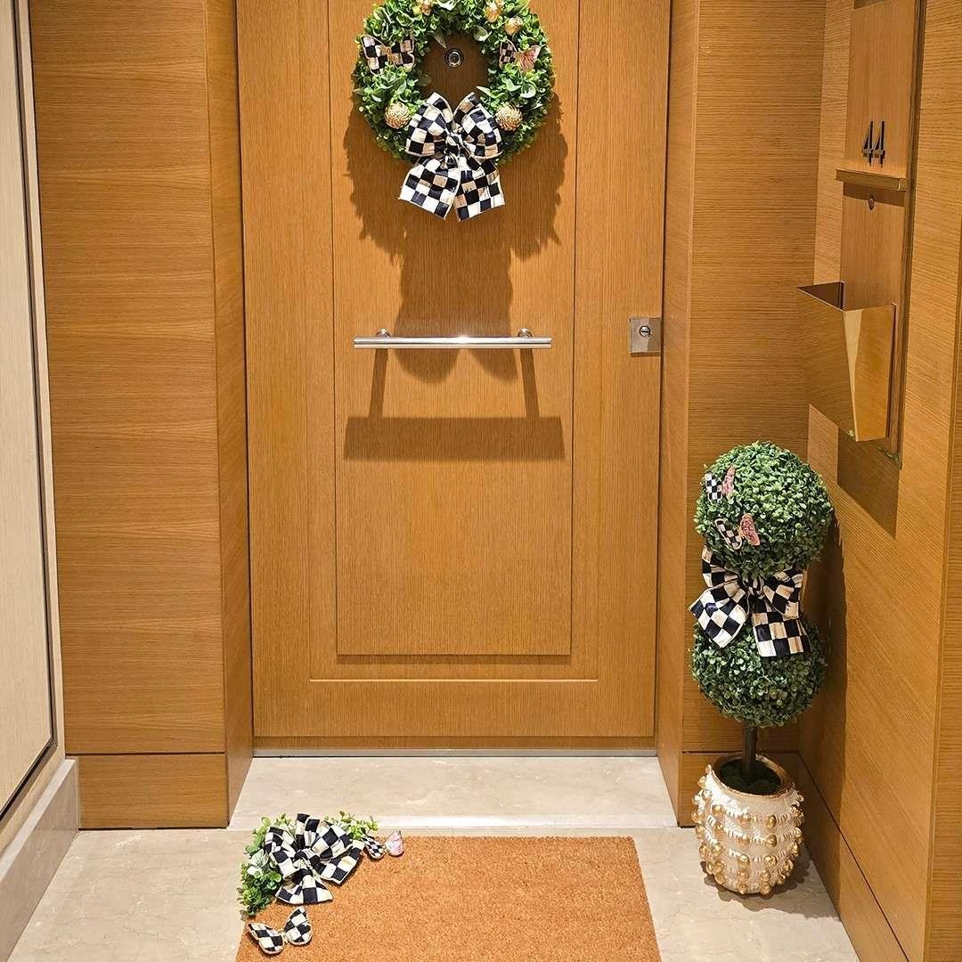 Ella imzalı özel tasarım kapı süsleri ve paspas modellerinde kullanılan tüm kurdele çeşitleri Mackenzie-Childs orijinal kurdeleleridir.