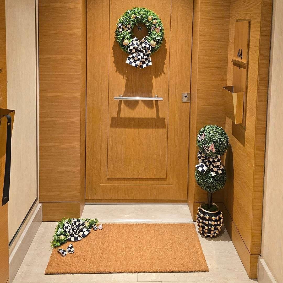 Ella imzalı özel tasarım kapı süsleri ve paspas modellerinde kullanılan tüm kurdele çeşitleri Mackenzie-Childs orijinal kurdeleleridir.