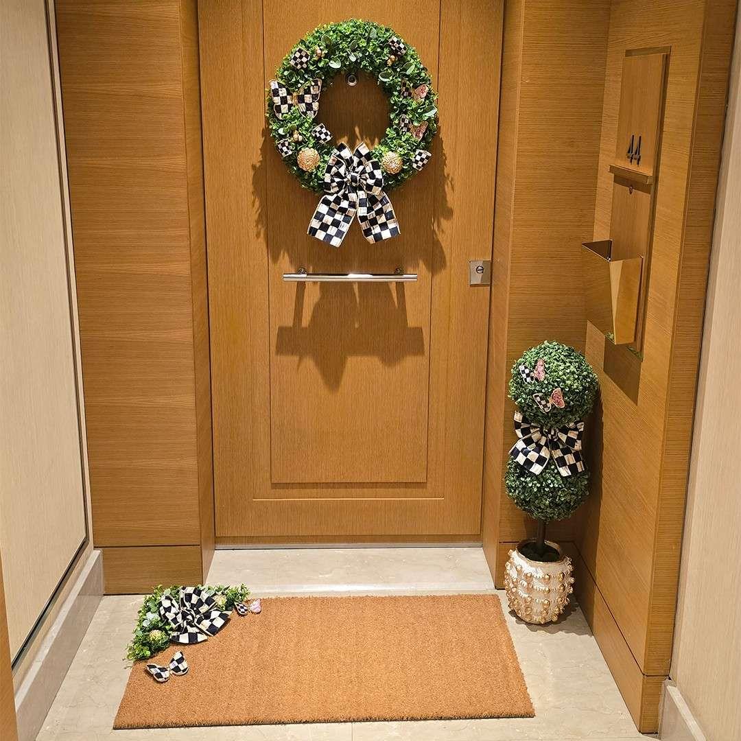 Ella imzalı özel tasarım kapı süsleri ve paspas modellerinde kullanılan tüm kurdele çeşitleri Mackenzie-Childs orijinal kurdeleleridir.